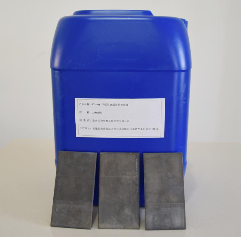 TY-03環(huán)保型金屬表面處理劑系淮南天力生物工程開發(fā)有限公司開發(fā),選用“植物提取物”及其衍生物的產(chǎn)品復(fù)合配制而成;成膜機(jī)理完全不同于傳統(tǒng)的鐵系、鋅系磷化液,為無縫隙整體成膜,膜薄,結(jié)合力強(qiáng)。顛覆了目前市場上硅烷和陶化成膜機(jī)理。鏡檢、杯凸實驗,劃痕實驗,鹽霧試驗和水腐蝕實驗效果理想。